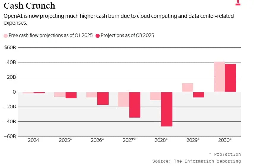 OpenAI lost $11.5 billion last quarter. That’s an insane amount of money though defensible, given the growth. However, much of the investment is amortized forward, meaning their cash flow is likely even worse. There are also signs that usage is flattening. What happens with the valuation if the growth stops or at least looses its pace.